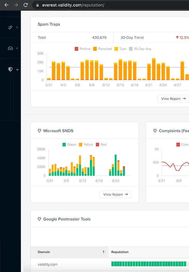 Monitoring email deliverability is of utmost importance to our business. Being able to see when things take a turn for the worse and being able to react quickly helps us keep our email reputation positive and keeps our emails in user's inboxes!